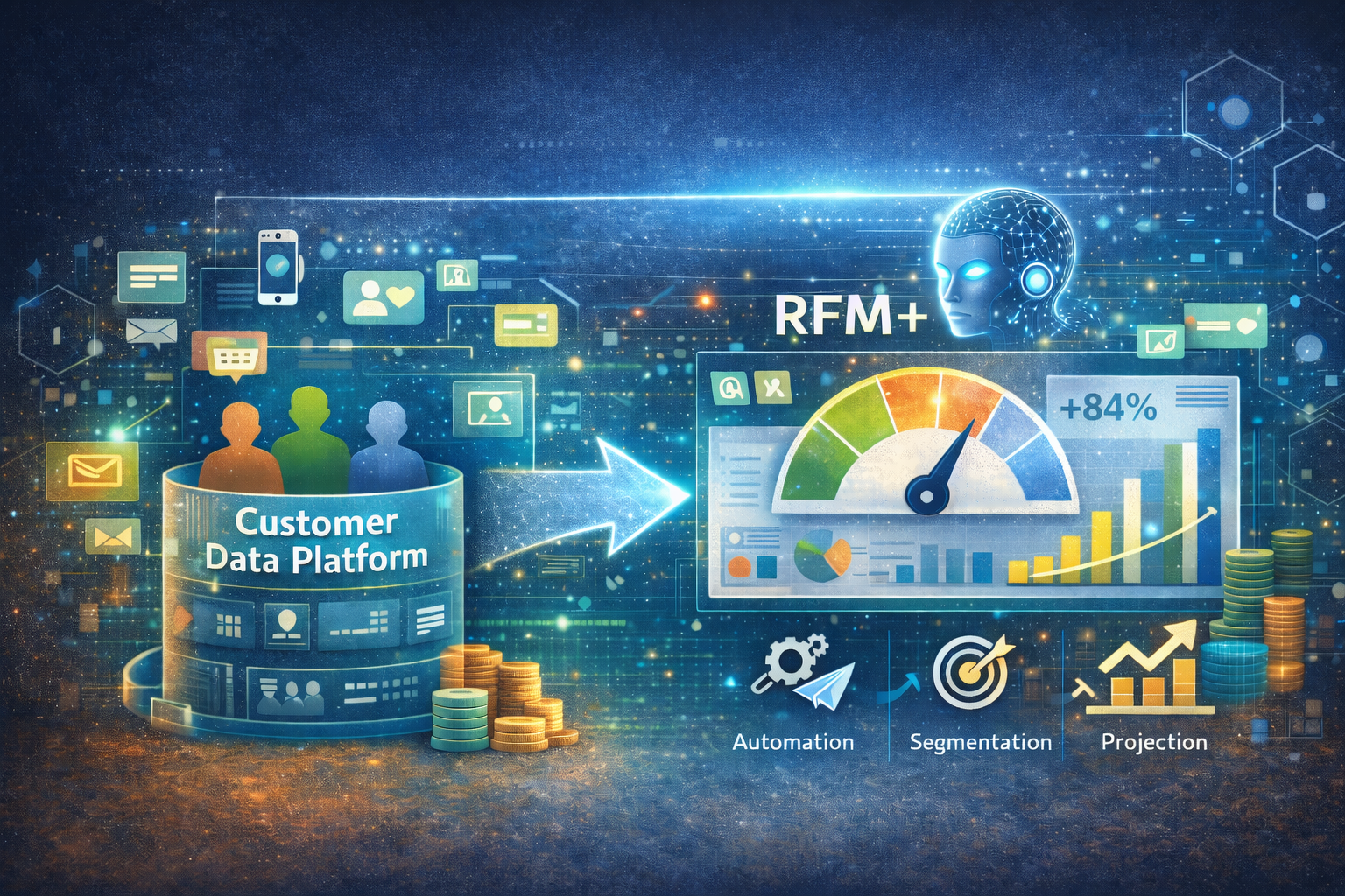 L’un des enjeux majeurs d’une CDP est l’activation marketing. Une fois les données consolidées, encore faut-il pouvoir déclencher des actions pertinentes. RFM+ apporte une structuration immédiatement exploitable. Les scores de récence, fréquence et montant, combinés aux indicateurs de churn, de réactivation ou de montée en valeur, deviennent des attributs dynamiques dans la CDP. Ces attributs peuvent être synchronisés en continu via API ou flux batch. Concrètement, un client dont la récence dépasse un seuil critique peut être automatiquement classé en segment “à risque”. Un client dont la fréquence accélère peut être identifié comme “à fort potentiel”. Cette logique transforme la CDP en système de pilotage dynamique. Les workflows marketing peuvent s’appuyer sur ces signaux pour déclencher des campagnes adaptées : relance ciblée, offre premium, cross-sell, programme de fidélité. L’intégration de RFM+ ne remplace pas la CDP, elle lui donne un langage économique. Les segments ne sont plus construits uniquement sur des règles marketing arbitraires, mais sur des comportements mesurés dans le temps. Cette granularité permet d’orchestrer des expériences omnicanales cohérentes : email, SMS, publicité programmatique, notifications in-app. La CDP devient alors un hub d’activation piloté par la valeur client.